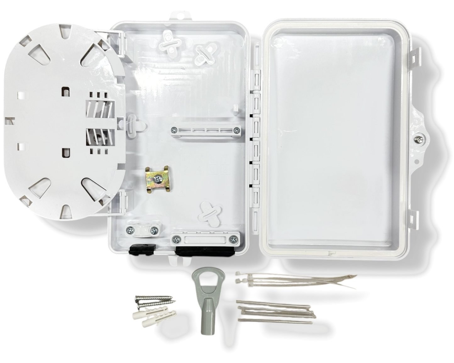 Je navrhnutý tak, aby jeho inštalácia bola jednoduchá a efektívna a zároveň ponúka overený systém správy optických vlákien. Umožňuje inštaláciu 4x adaptérov SC Simplex (alebo LC Duplex) a organizáciu až 8 zvarov do 1 optickej kazety (s chráničmi spojov usporiadanými do dvojitej polohy).