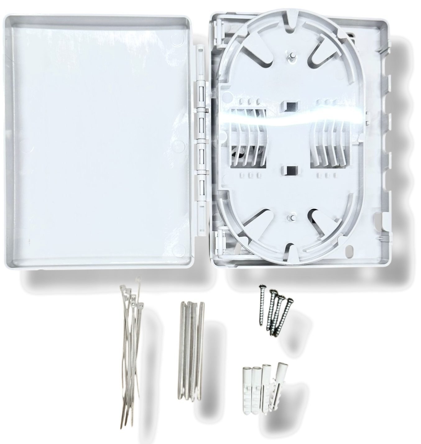 Minidistribučný box s optickými vláknami DW-FT-A-4SC umožňuje organizáciu až 4 optických vlákien. Umožňuje vloženie jedného optického kábla. Umožňuje vám nainštalovať štyri optické adaptéry (SC-simplex / LC-duplex).