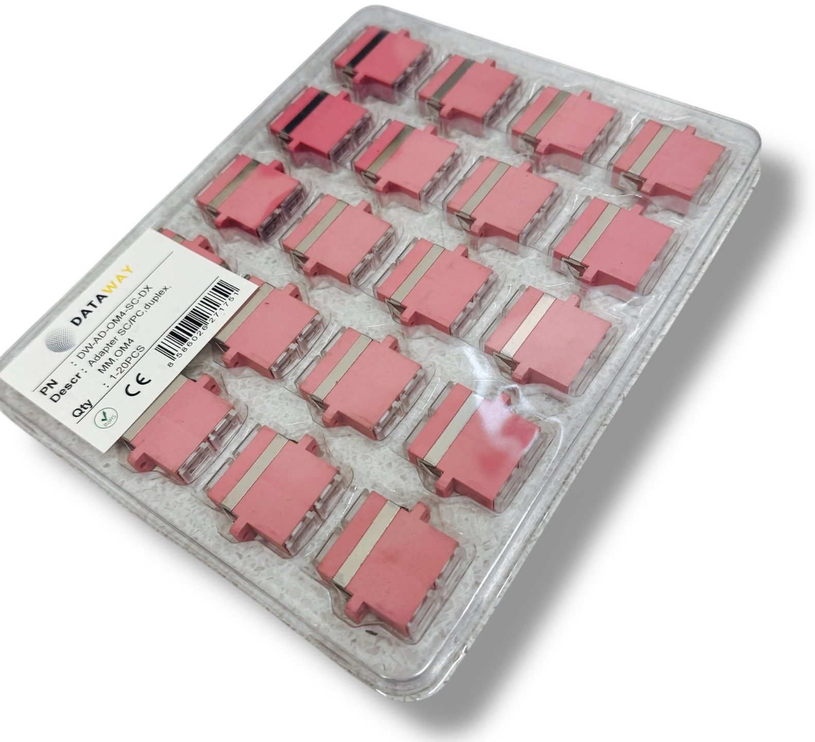 Štandardné originálne balenie obsahuje 20 kusov adaptérov v plastovom blistri. Taktiež na optické adaptéry DATAWAY poskytujeme predĺženú záruku až 60 mesiacov.