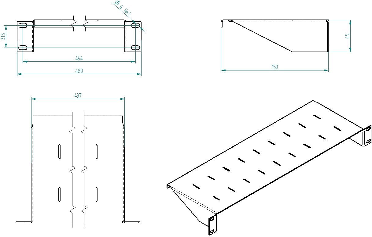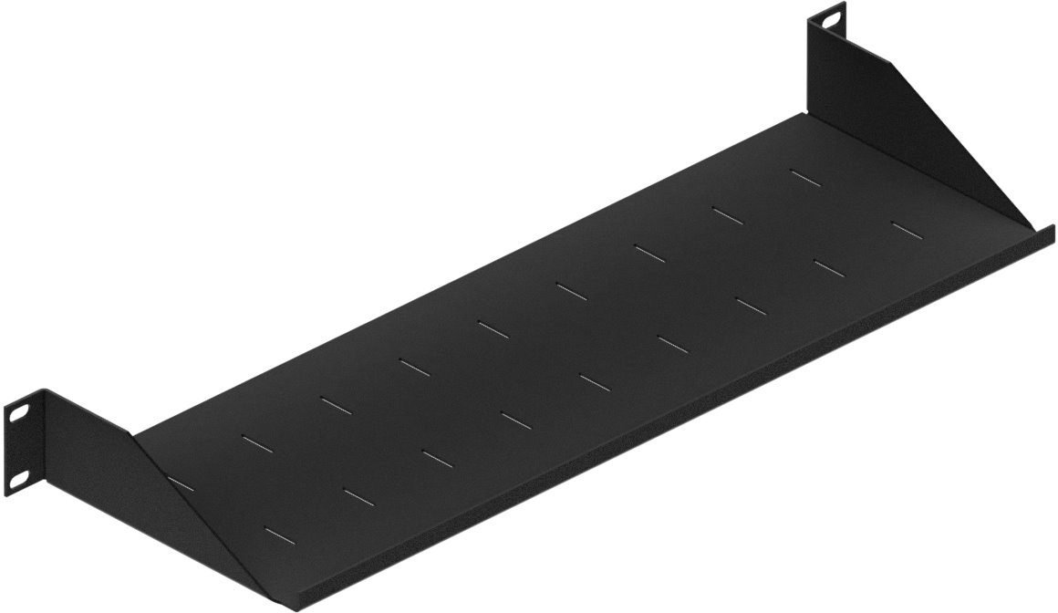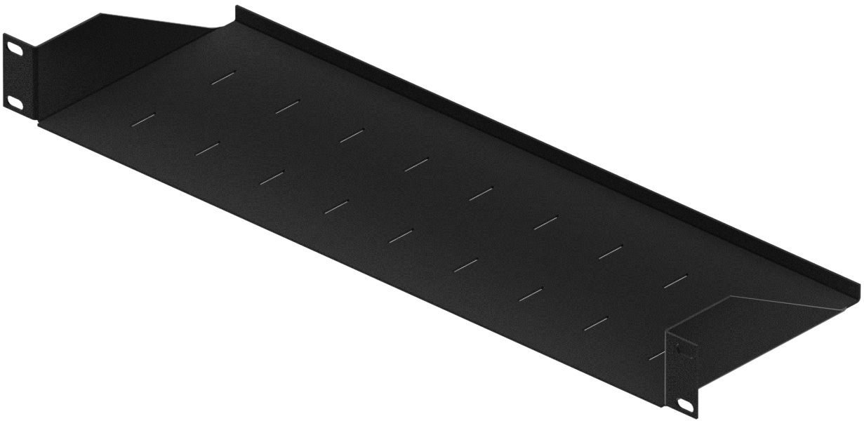FS-A1-350-B je pevná polica čiernej farby s perforáciou do 19" rozvádzačov. V rozvádzači polica zaberie výšku 1U, hĺbka činí 350mm a nosnosť je 40kg.