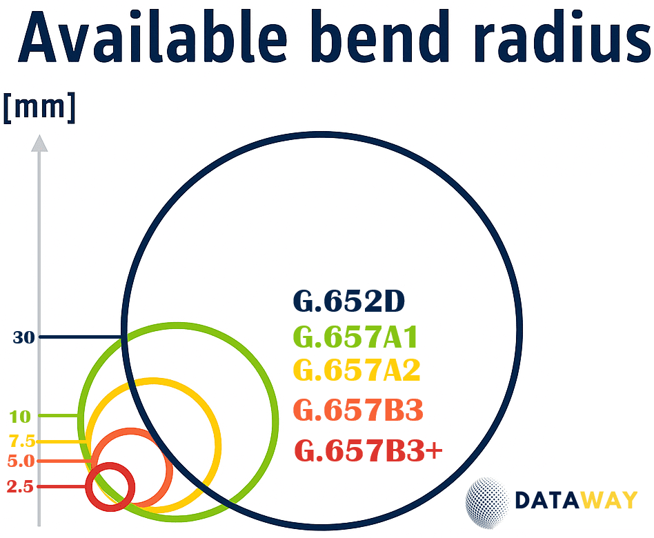 Vlákno: Singlemode G.657B3/PLUS – maximálna ohybová odolnosť a nízky útlm