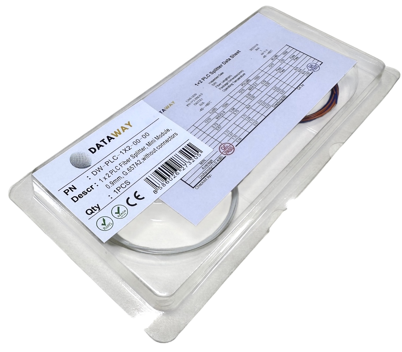 Optický splitter DATAWAY PLC 1×2 v kompaktnom MINI modulovom prevedení slúži na presné a rovnomerné rozdelenie optického signálu z jedného vstupného vlákna na dva výstupy. Použitá PLC technológia (Planar Lightwave Circuit) zaručuje nízky útlm, stabilný výkon a vysokú presnosť rozdelenia v celom pásme vlnových dĺžok 1260–1650 nm.
